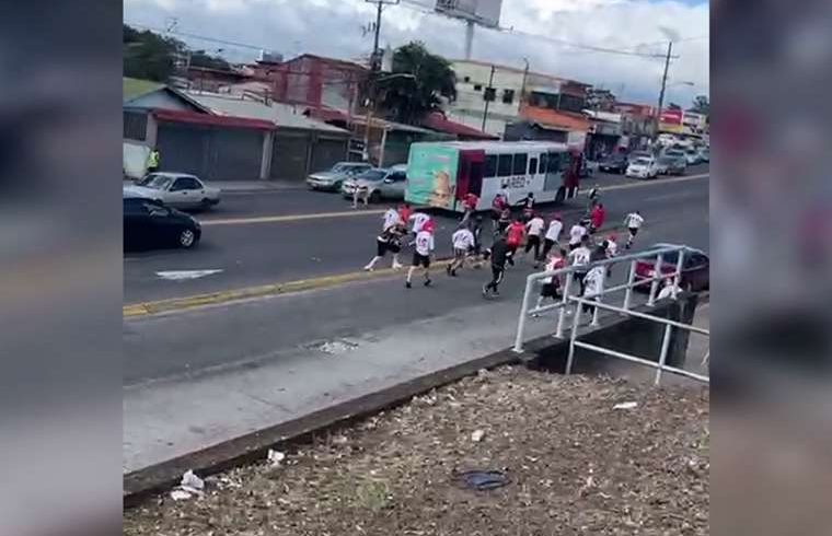 Al parecer la unidad que venía de Desamparados estaba cerca cuando llegaron Walmart San SebastiánSe encontró con algunos integrantes del bar La 12 que se encontraban en la acera, lo que desató un enfrentamiento con violentos insultos.